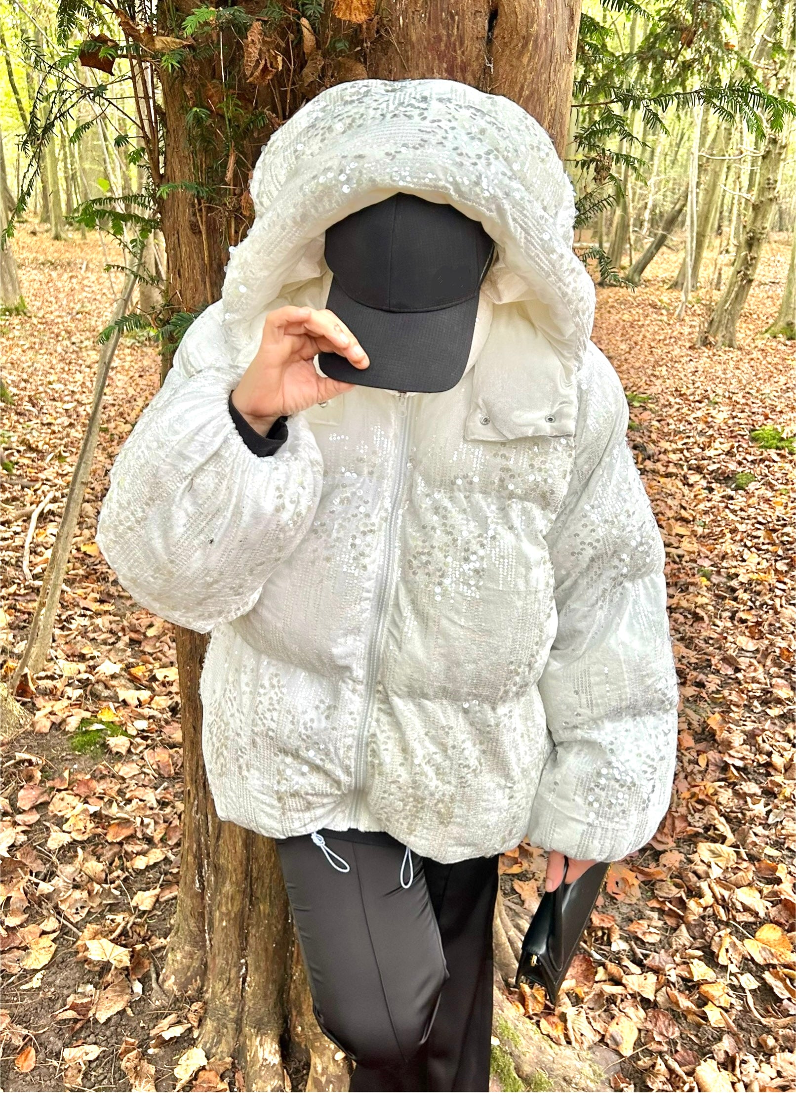 Manteau pailleté en tissu et très chaude. Idéal pour les hivers froids.